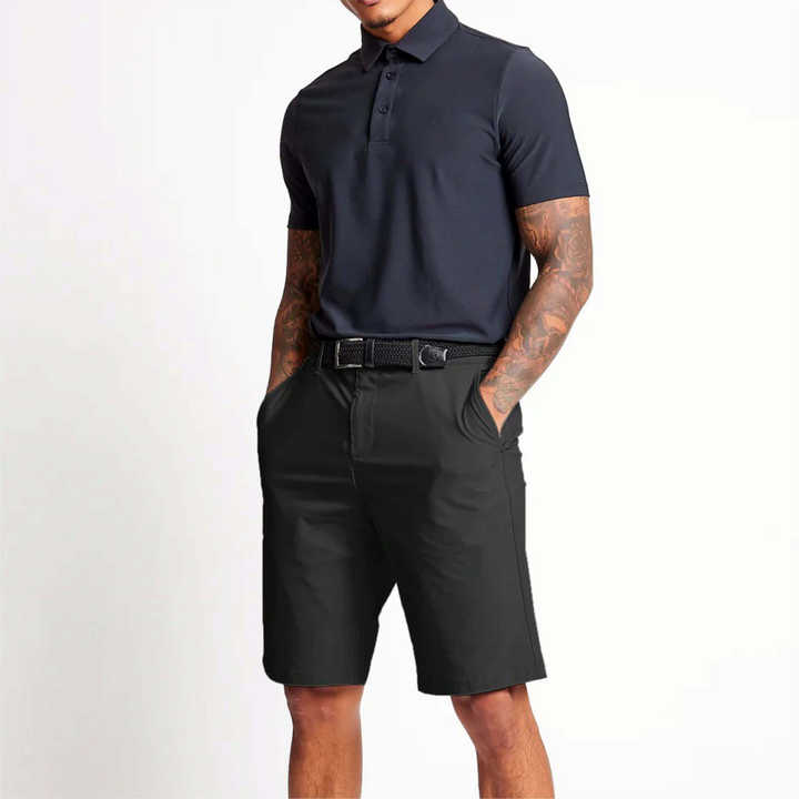 กางเกงขาสั้นเล่นกอล์ฟน้ำหนักเบาสำหรับผู้ชายกางเกงขาสั้นเล่นกอล์ฟแบบมีโลโก้ระบายอากาศได้ดีและมีความชื้นตามสั่ง