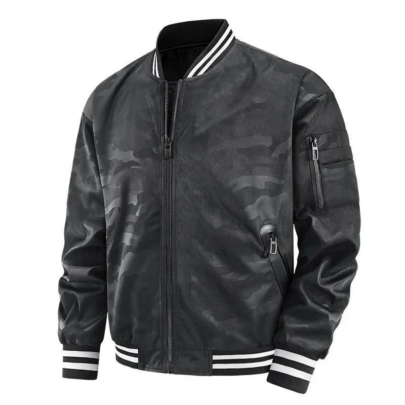 แจ็กเก็ตบอมเบอร์สไตล์ไฮสตรีทสำหรับผู้ชายสีพื้นคอตั้งเสื้อด้านหน้าสำหรับฤดูหนาว