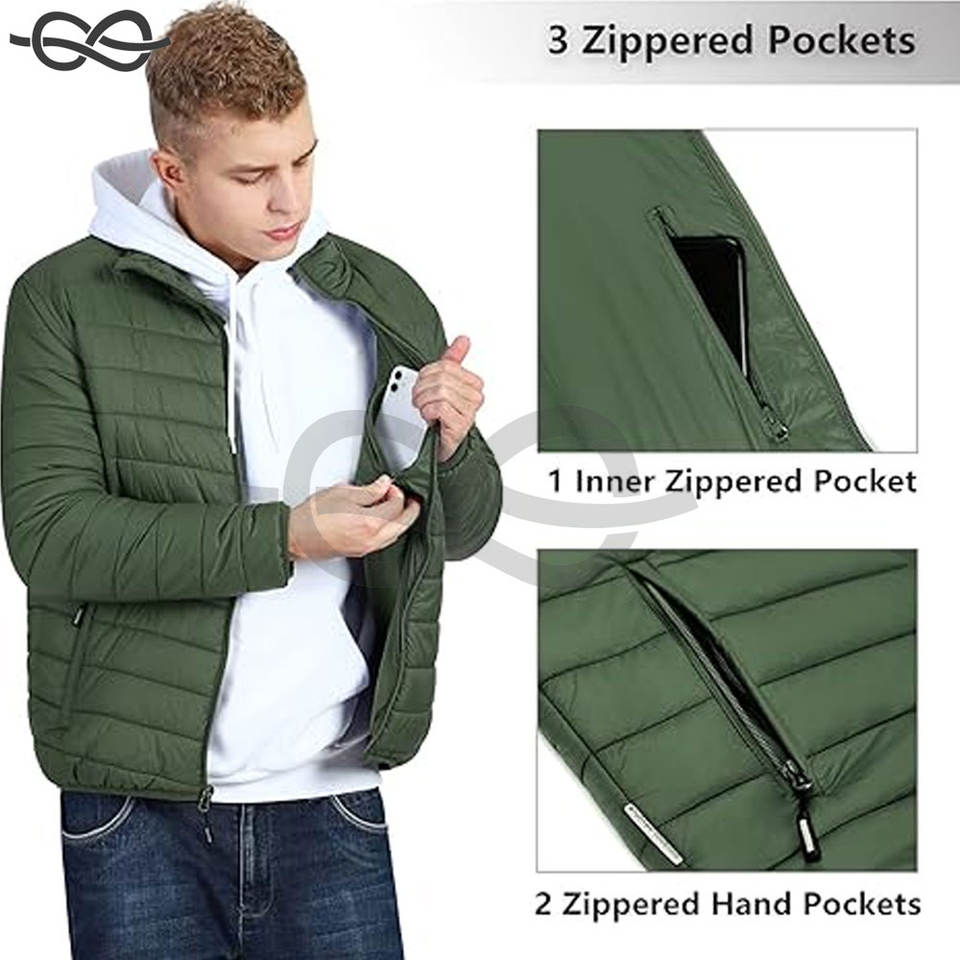 Men's Lightweight Insulated Puffer Winter Jacket Packable Hooded Puffy Coat Snow Skiing Hiking Cold Weather Travel Adventures
