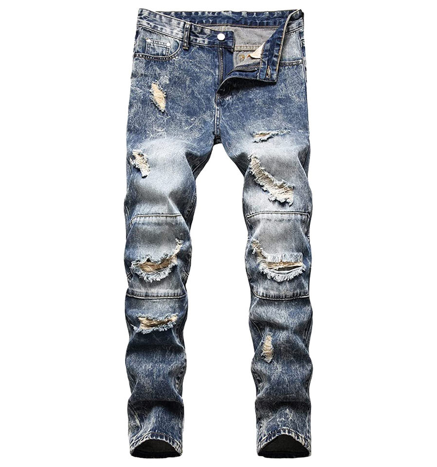 กางเกงยีนส์ผ้าแคนวาสทรงหลวมเอวกลางน้ำหนักเบาสำหรับผู้ชาย สไตล์ฮิปฮอป แต่งลายตาราง ปะติดแบบขาดๆ ยืดได้ สวมใส่สบายๆ