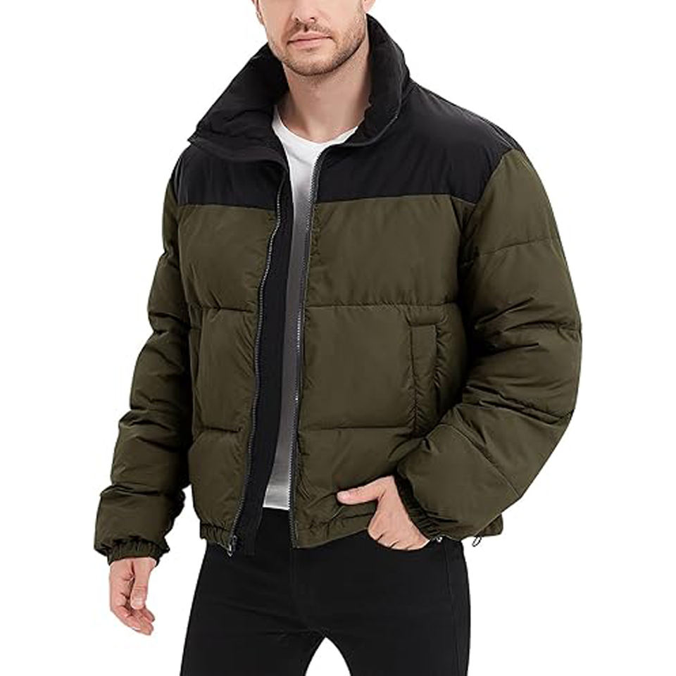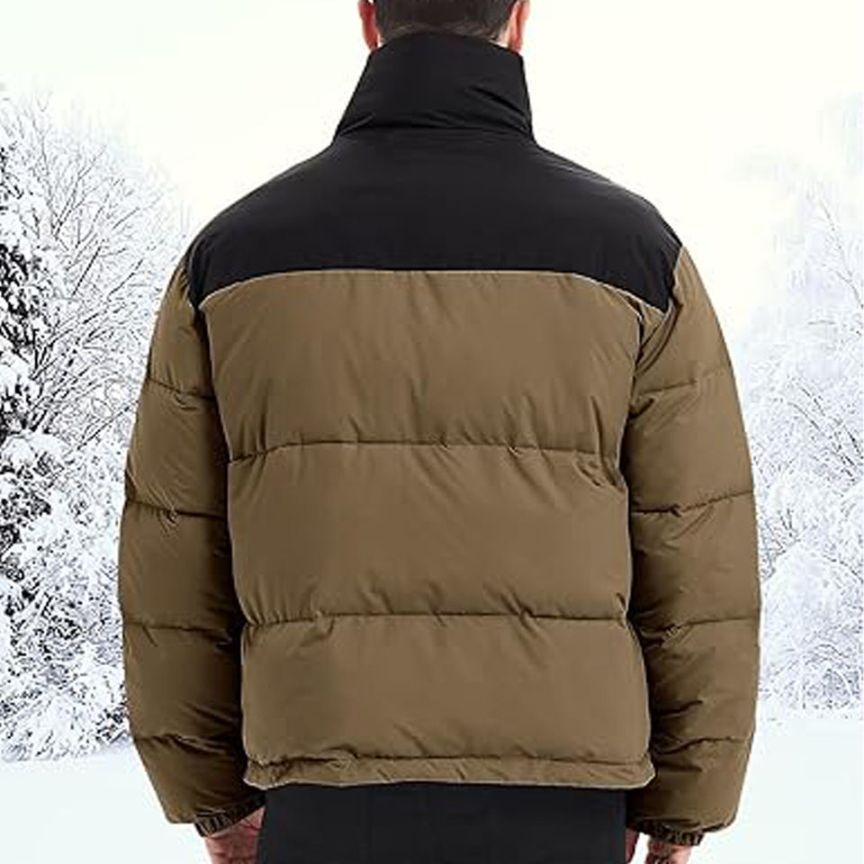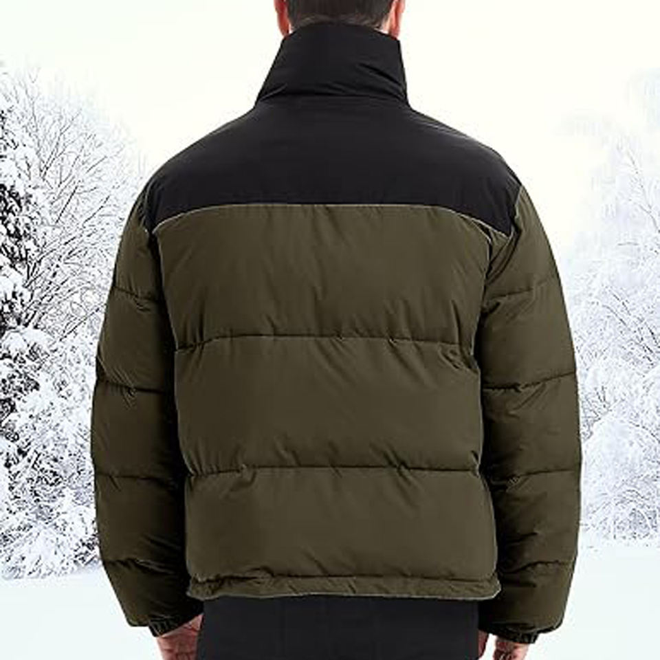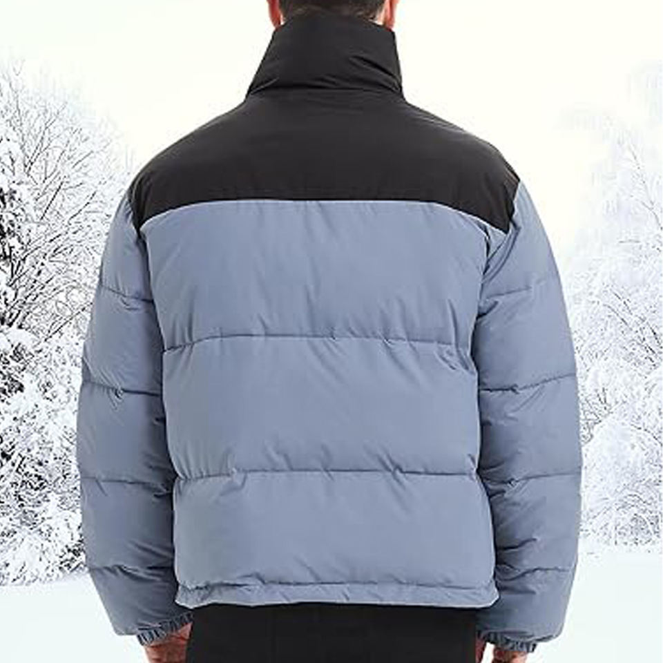 แจ็กเก็ตขนเป็ดน้ำหนักเบาสำหรับผู้ชาย, เสื้อโค้ทแนวสตรีทลำลองกันน้ำมีปกเสื้อและโลโก้ด้านหน้า