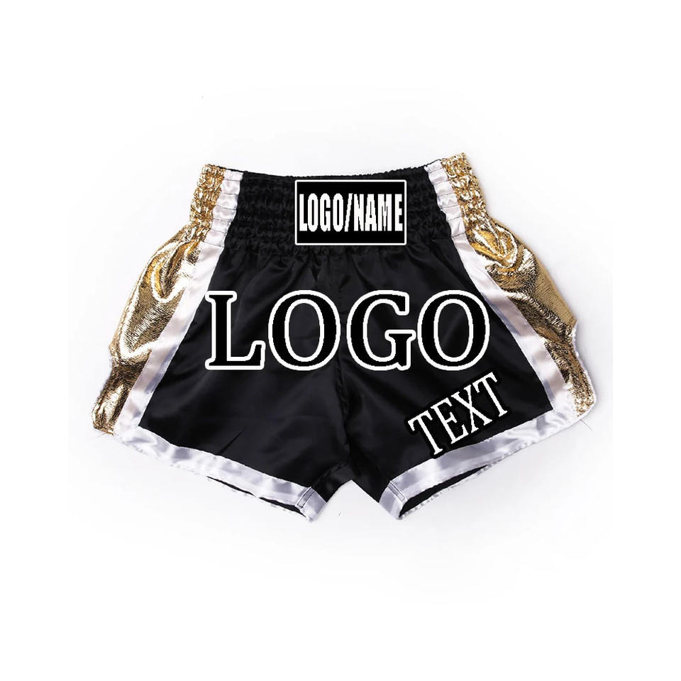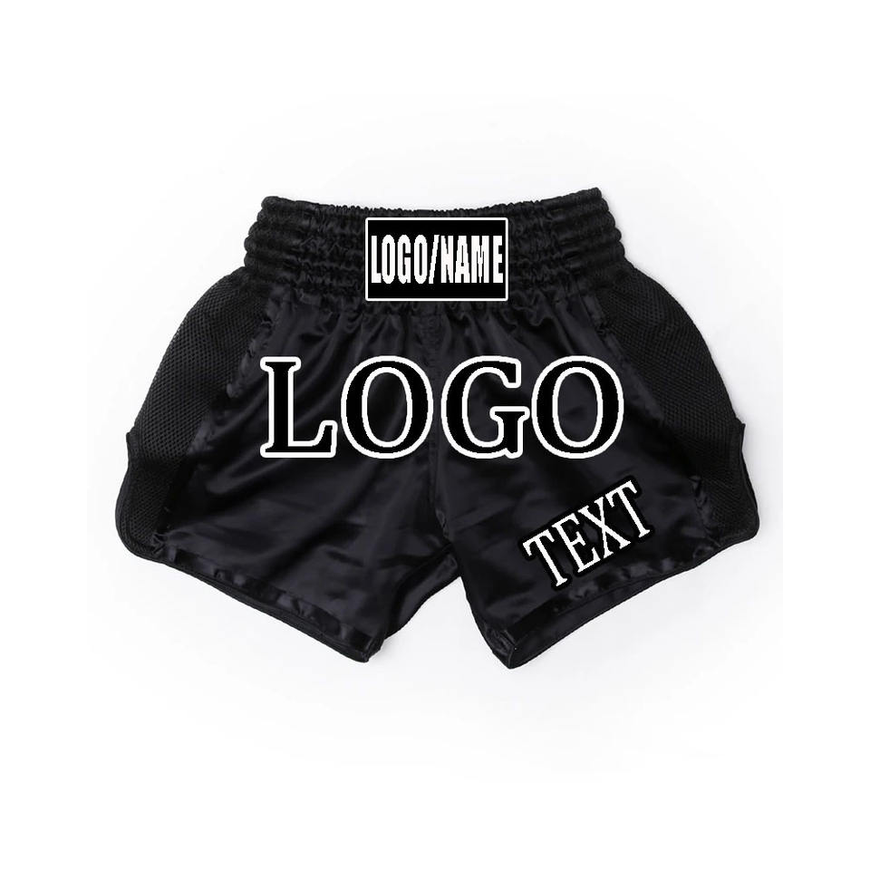 กางเกงชกมวยผ้าซาตินน้ำหนักเบาสำหรับผู้ชาย พิมพ์ลายเต็มตัว รับผลิตแบรนด์ส่วนตัว ชุดออกกำลังกาย ชุดมวยไทย ลายเรียบ