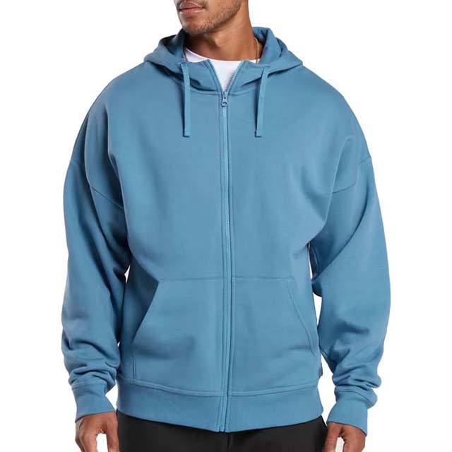 เสื้อกันหนาวมีฮู้ดสำหรับผู้ชายน้ำหนักเบาเข้ารูปมีซิปแบบกำหนดเองเสื้อกันหนาวผ้าฝ้ายระบายอากาศได้ดี