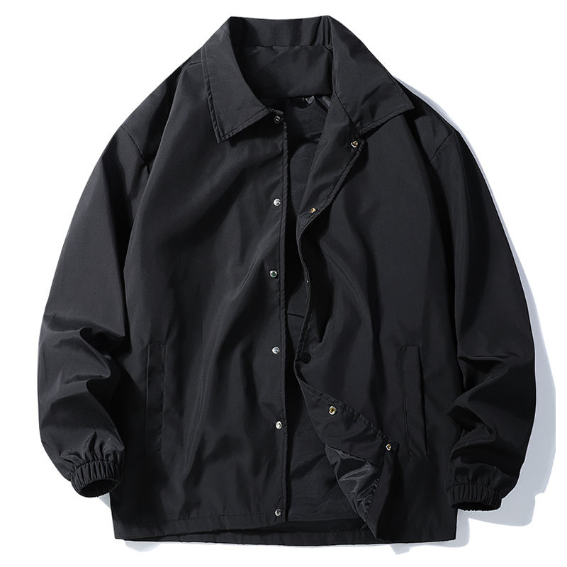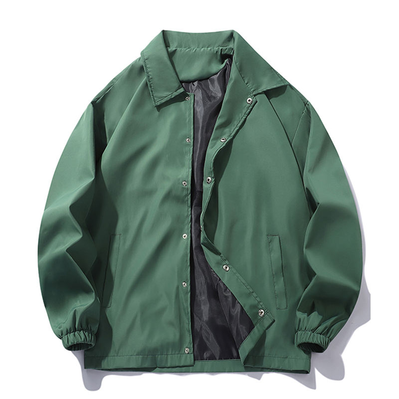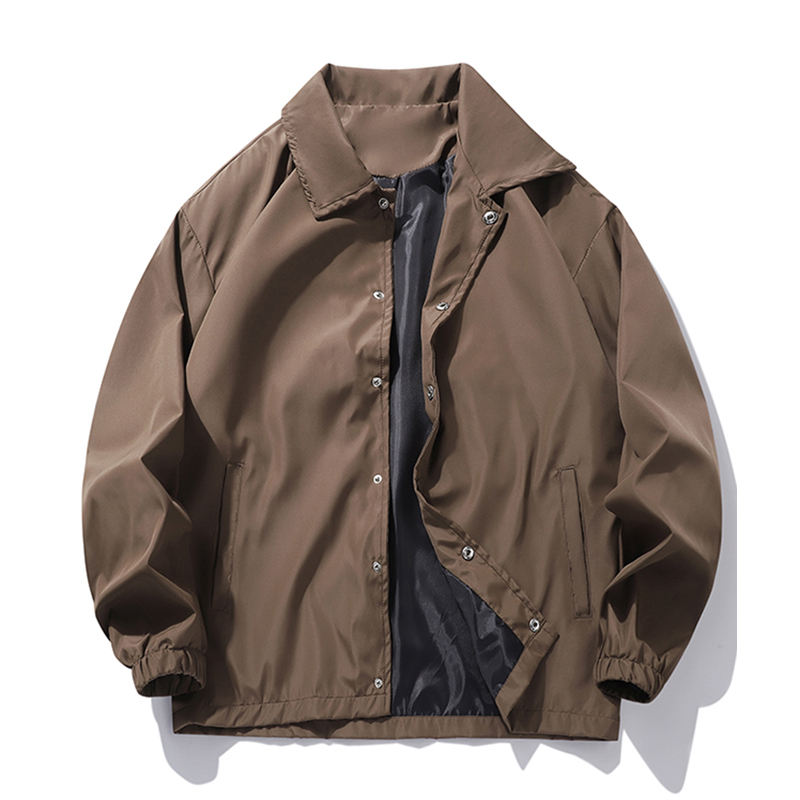 เสื้อแจ็คเก็ตเทรนช์สปอร์ตน้ำหนักเบาสำหรับผู้ชาย เหมาะสำหรับฤดูใบไม้ผลิและฤดูใบไม้ร่วง แจ็คเก็ตโค้ช ปกคอปกติดกระดุม เสื้อแจ็คเก็ตกันลมลำลอง