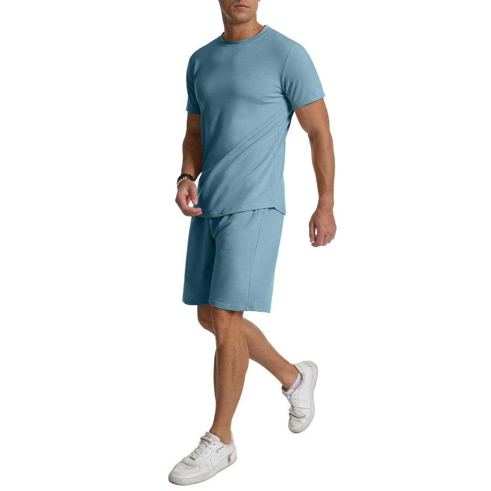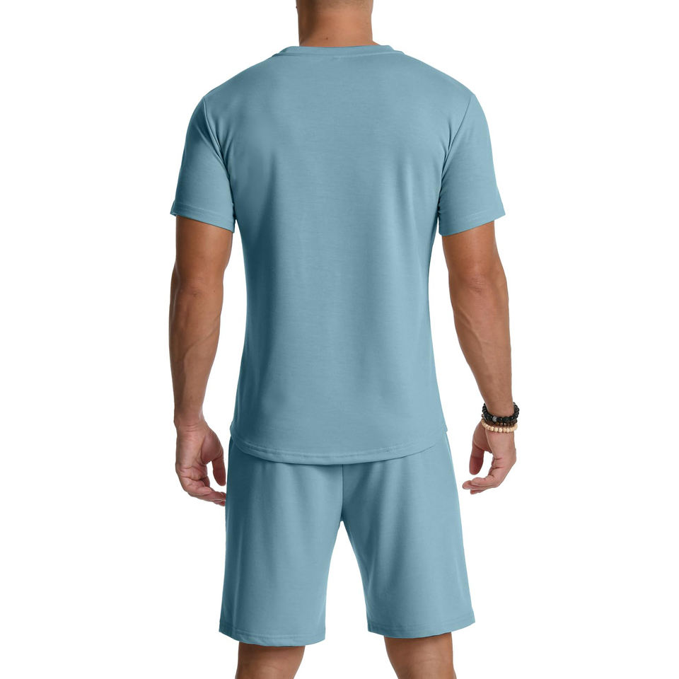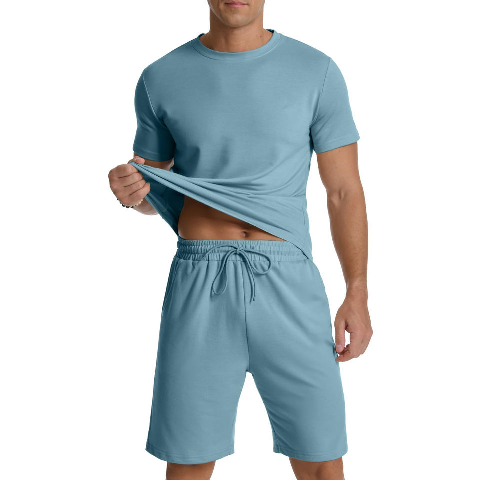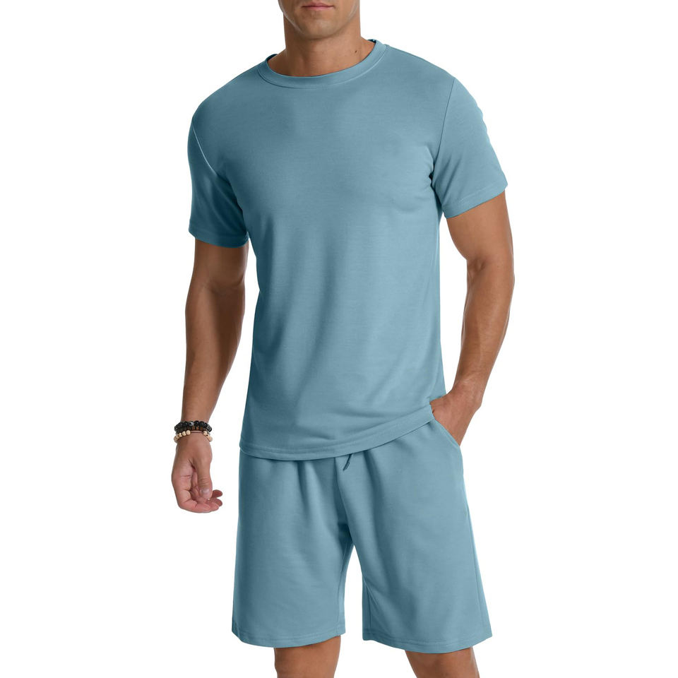 ชุดเสื้อยืดและกางเกงขาสั้นน้ำหนักเบาสำหรับผู้ชายเหมาะสำหรับอากาศที่อบอุ่นและกิจกรรมกลางแจ้งด้วยวัสดุที่มีคุณภาพแบบพอดีตัวที่ผ่อนคลาย