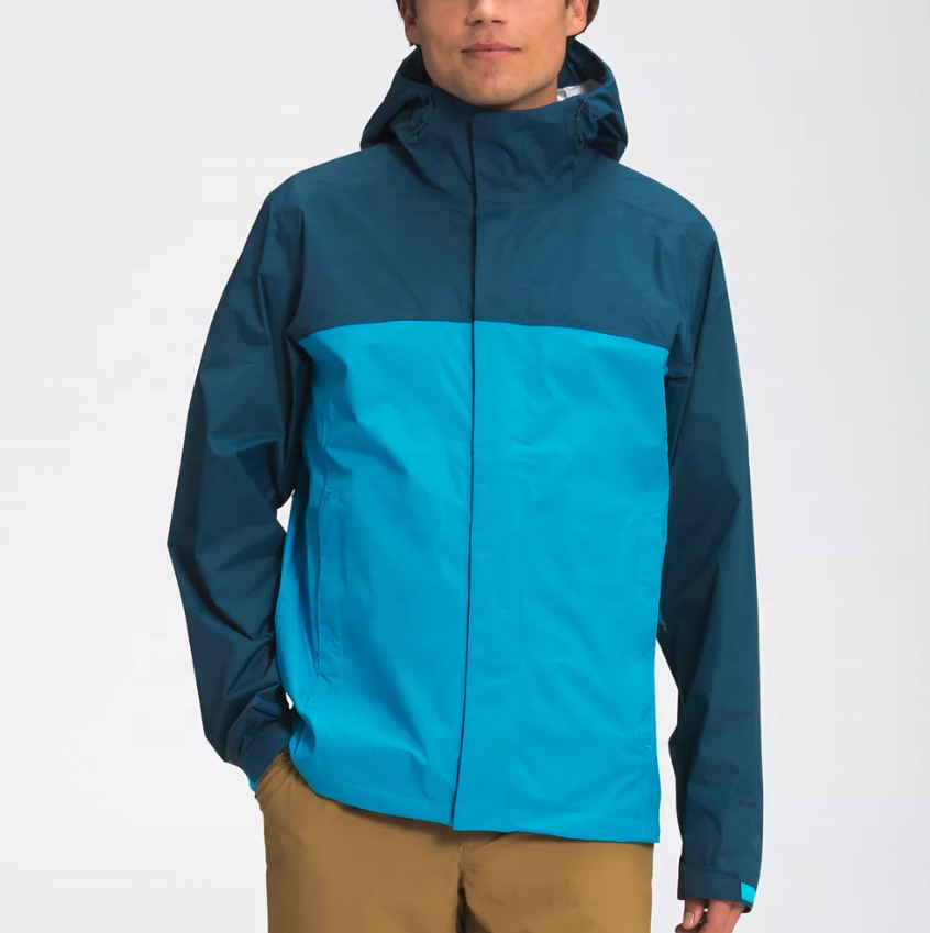 เสื้อแจ็คเก็ตกันน้ำสำหรับผู้ชาย น้ำหนักเบา ระบายอากาศได้ดี มีฮู้ด โลโก้ด้านหน้า คอตั้ง เหมาะสำหรับเดินป่า ตั้งแคมป์ ผลิตจากผ้าทอ