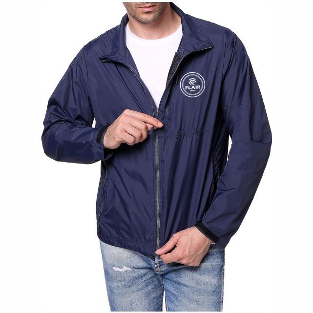 แจ็กเก็ตกันลมน้ำหนักเบาของผู้ชายมีกระเป๋าซิปและปลอกปรับได้
