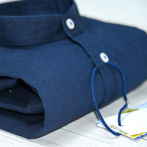 เสื้อเชิ้ตผ้าลินินผสมสำหรับผู้ชาย คอจีน ตะเข็บงานฝีมือ