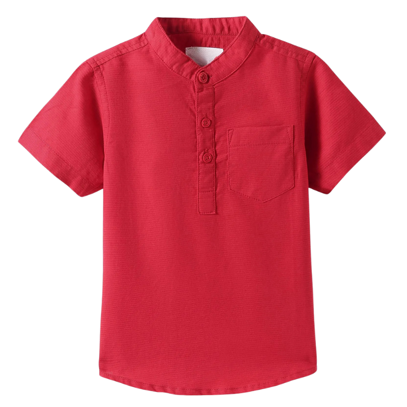 เสื้อผู้ชายผ้าลินินทอครึ่งแขนเสื้อปกแมนดารินสีทึบสบายและทันสมัย