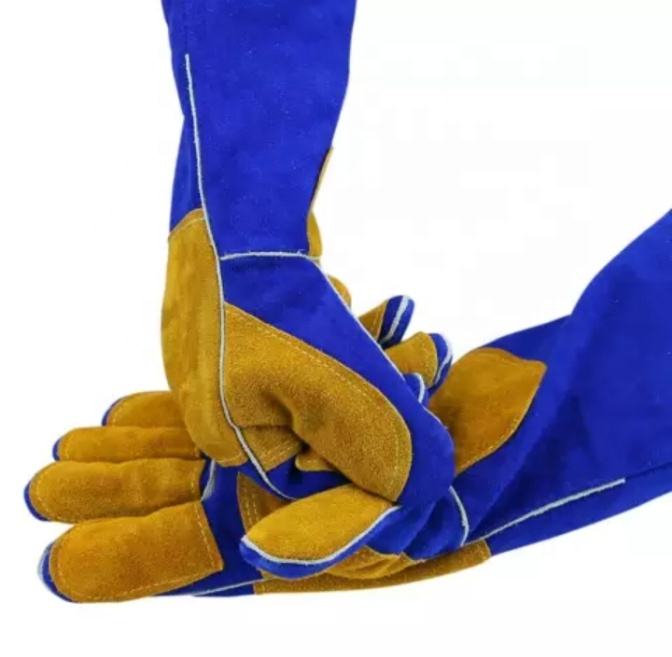 ถุงมือเชื่อมหนังวัวแยกได้ถุงมือทำงานยางกันความร้อนและทนไฟสำหรับผู้ชาย