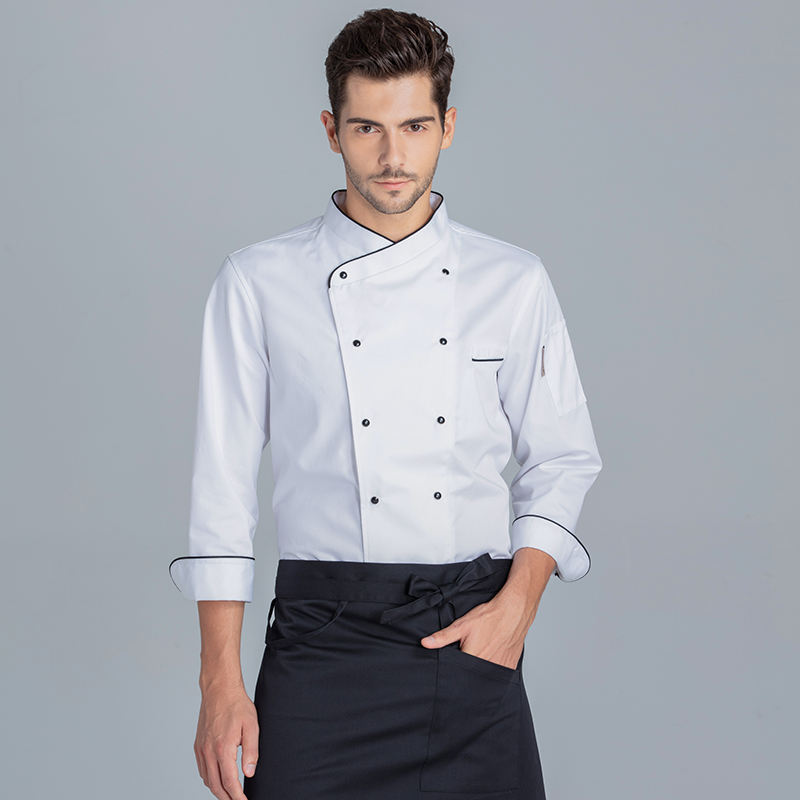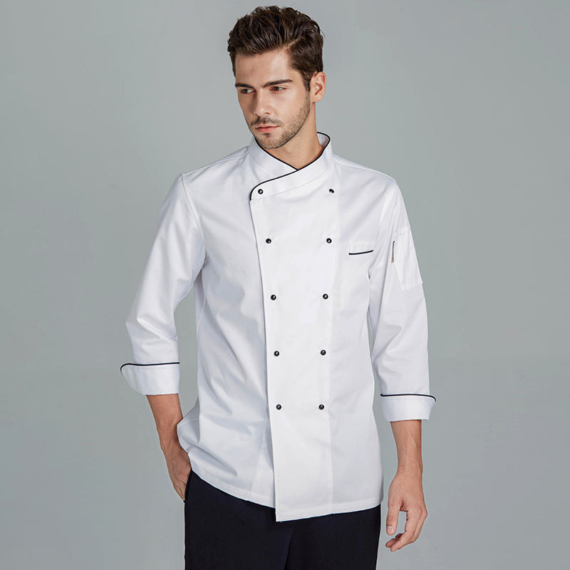 ชุดทำงานเชฟแขนยาวของผู้ชายสำหรับทำอาหารสำหรับโรงแรมร้านอาหารตะวันตกโรงอาหารจัดเลี้ยงในเครื่องแบบบาร์