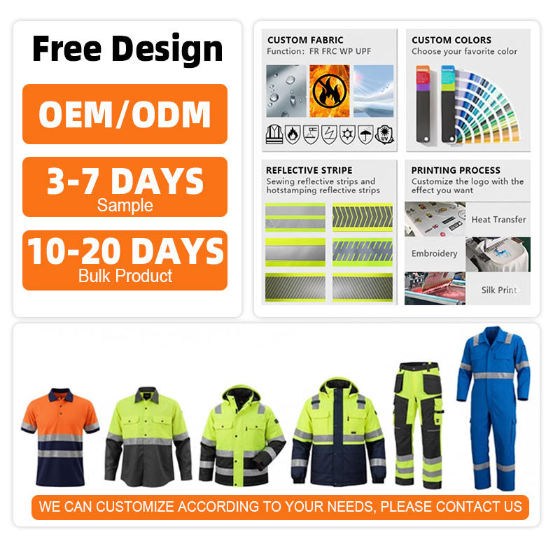 ชุดเสื้อผ้าสะท้อนแสงแขนยาวสำหรับผู้ชาย - เสื้อและกางเกงสะท้อนแสงสำหรับงานก่อสร้าง ผลิตจากผ้าฝ้าย ขายแยกชิ้น
