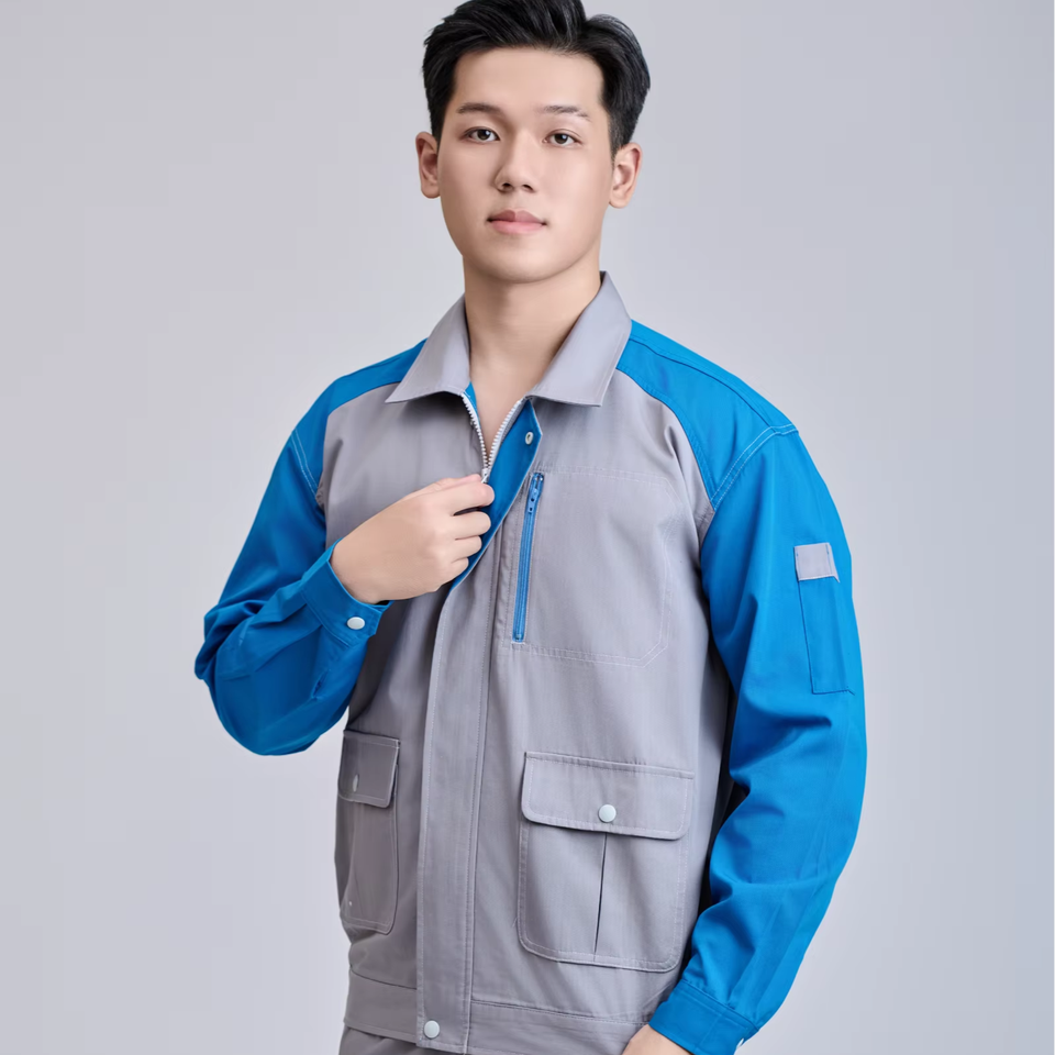 ชุดยูนิฟอร์มทำงานแบบมองเห็นได้ชัดเจนสำหรับผู้ชาย แขนยาว | ผ้า TC ยี่ห้อ FMF ทนทาน ระบายอากาศได้ดี สวมใส่สบาย ป้องกันรอยยับ