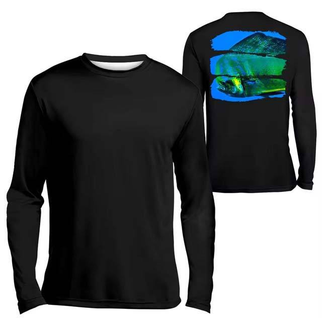 เสื้อตกปลาแขนยาวของผู้ชายแห้งเร็วป้องกันรังสียูวีมีฮู้ดเสื้อตกปลาโพลีเอสเตอร์ระเหิด