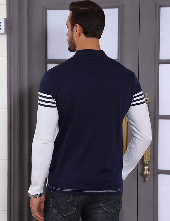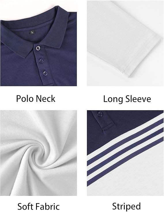 เสื้อโปโลแขนยาวผู้ชาย ลายทาง ผ้าฝ้าย ซับเหงื่อ ระบายอากาศดี คอปกคลาสสิก สไตล์ลำลอง เหมาะสำหรับเล่นกอล์ฟ