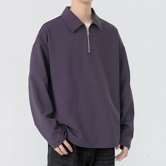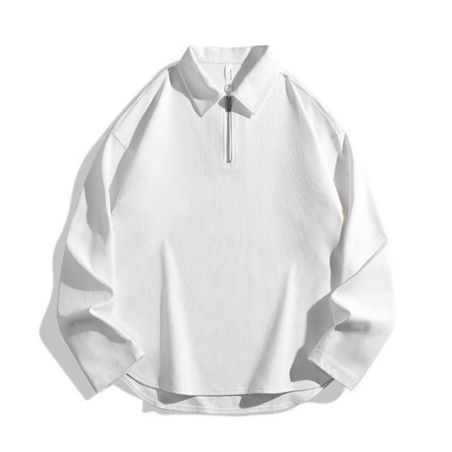 เสื้อโปโลแขนยาวผู้ชาย รุ่นใหม่ ฤดูใบไม้ร่วง ฤดูหนาว แบรนด์ทันสมัย สีพื้น ทรงหลวม ไหล่ตก สไตล์มินิมอล ปกซิป