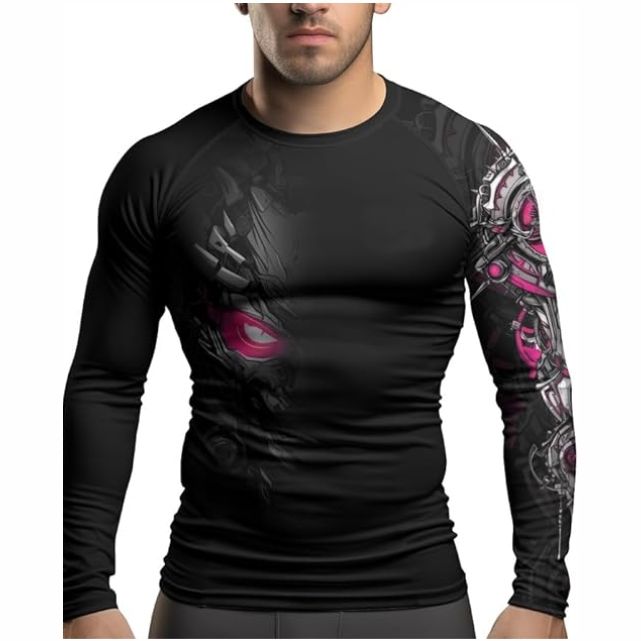 เสื้อรัดรูปผื่นแขนยาวของผู้ชายเสื้อรัดรูปแบบแห้งเร็วสำหรับเล่นกีฬายิม MMA BJJ ต่อสู้กันผดผื่นสำหรับผู้ใหญ่
