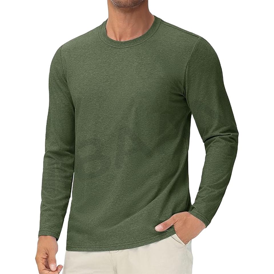Men's Long Sleeve Shirt Cotton Crew Neck Soft Moisture Wicking Tee Shirts Casual Basic Tees