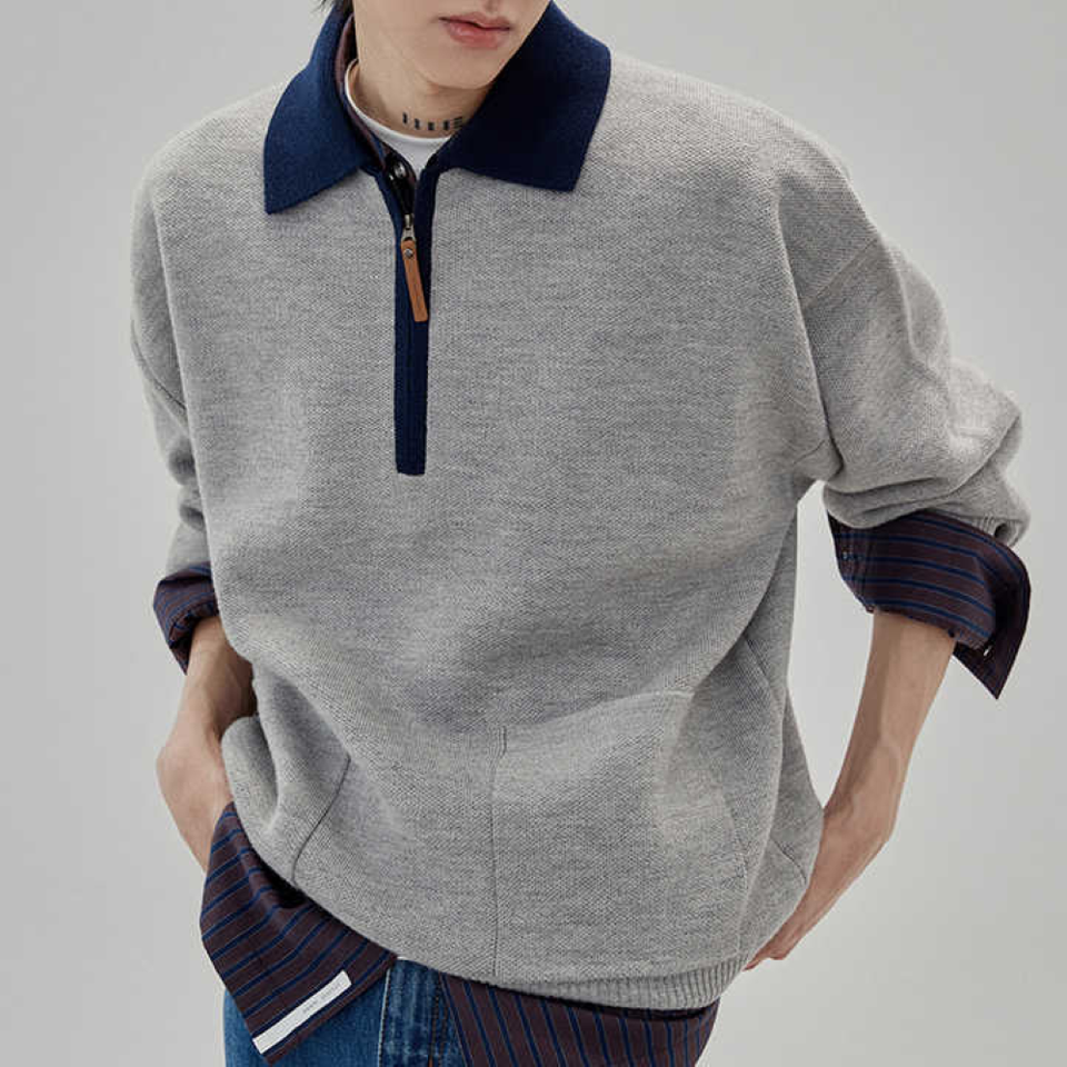 Men's Long-Sleeve Soft Touch Quarter-Zip Sweater Breathable Knitted Sweater Cotton Men's Winter Knitwear ODM Supply