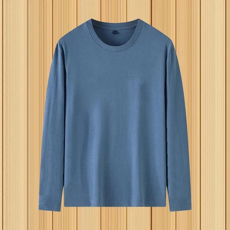 G เสื้อยืดแขนยาวสำหรับผู้ชาย, ผ้าไหมนม180g เสื้อคอกลมบางหลวมสีพื้นเสื้อลำลองขนาดใหญ่ระบายอากาศสำหรับฤดูหนาว