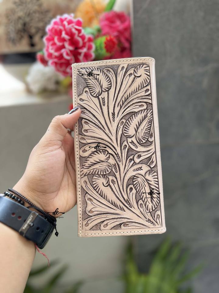 กระเป๋าสตางค์ใบยาวสำหรับผู้ชายดีไซน์ใหม่ทำมือแกะสลักหนังสีเทอร์ควอยซ์สไตล์ตะวันตกขายดีของขวัญที่ใส่เงินสดแฟชั่น