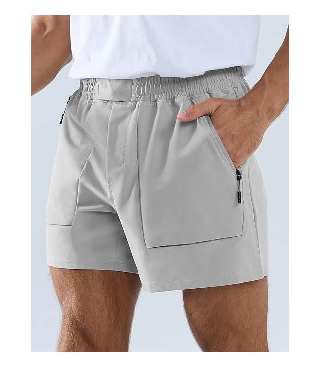 กางเกงขาสั้นลำลองผู้ชายผ้าเทอร์รี่คอตตอน 5.5 นิ้ว เอวยางยืดสูง กระเป๋าหลายช่อง ปักลาย กันยับ ใส่ได้ทุกวัน เหมาะสำหรับเดิน