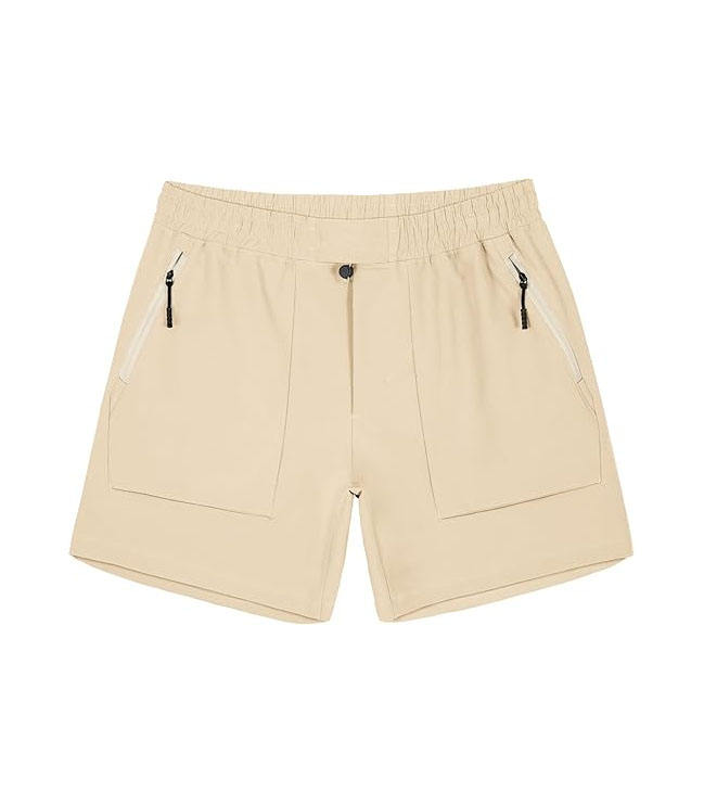 กางเกงขาสั้นลำลองผู้ชายผ้าเทอร์รี่คอตตอน 5.5 นิ้ว เอวยางยืดสูง กระเป๋าหลายช่อง ปักลาย กันยับ ใส่ได้ทุกวัน เหมาะสำหรับเดิน
