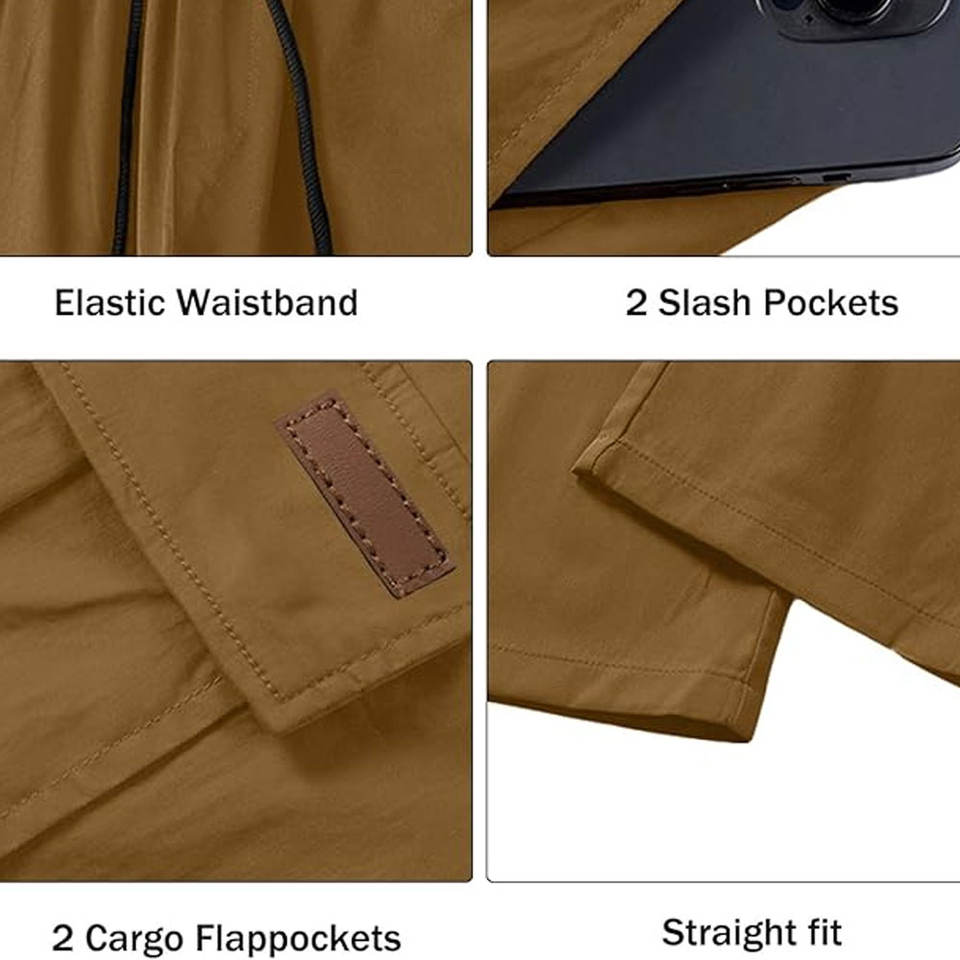 กางเกงคาร์โก้ขาตรงลำลองหลวมสำหรับผู้ชาย, กางเกงผ้าแคนวาสน้ำหนักเบาสามารถซักได้หลายกระเป๋า