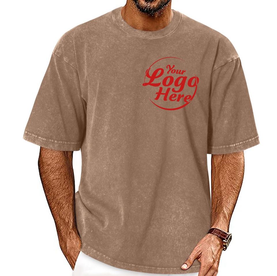 เสื้อยืดผ้าฝ้าย100% ทรงหลวมสำหรับผู้ชายเสื้อยืดธรรมดาแบบสตรีทแวร์มีลาย3D ถักแบบเฮฟวี่เวทซักได้ไซส์