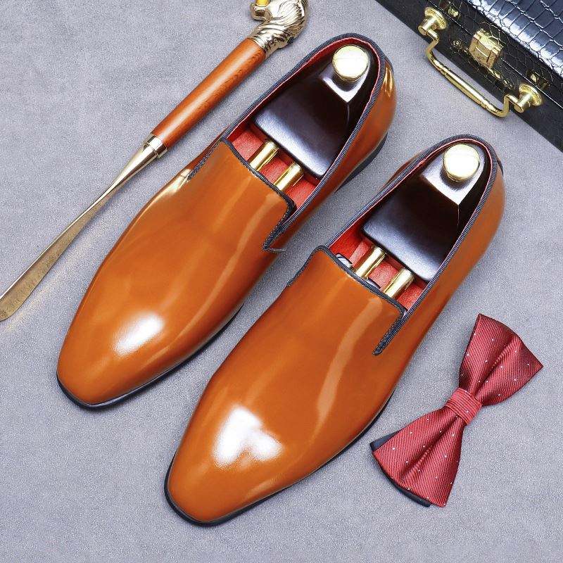 รองเท้าหนังทรงแหลมสำหรับผู้ชายสุดหรู สีดำและสีน้ำตาล กันน้ำ คุณภาพสูง ดีไซน์เนอร์แบรนด์
