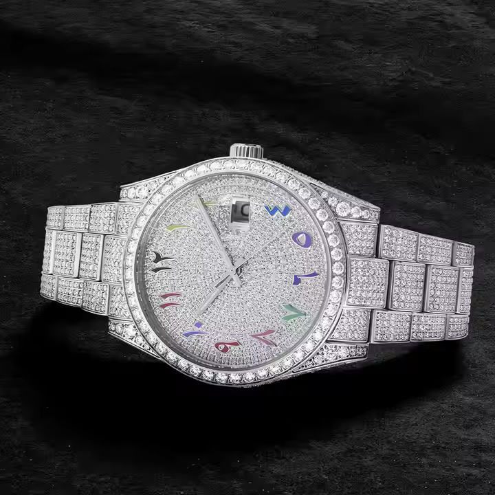 นาฬิกาควอทซ์สายสแตนเลสสุดหรูสำหรับผู้ชายนาฬิกาอะนาล็อกสไตล์ฮิปฮอประดับพรีเมียมเพชรเพชรเพชรโมอิสสุดหรู5มม.