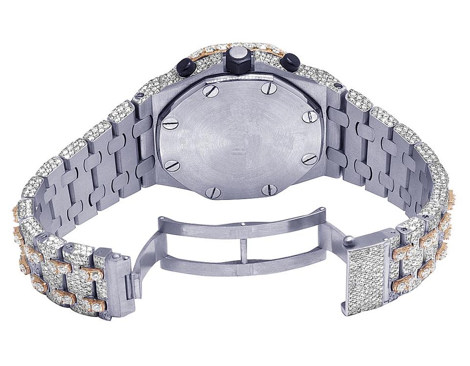 Men's Luxury Analog Chronograph Watch Auto Date Custom Design Labgrown Diamond Studded 20mm Width Stainless Steel Tonneau Glass