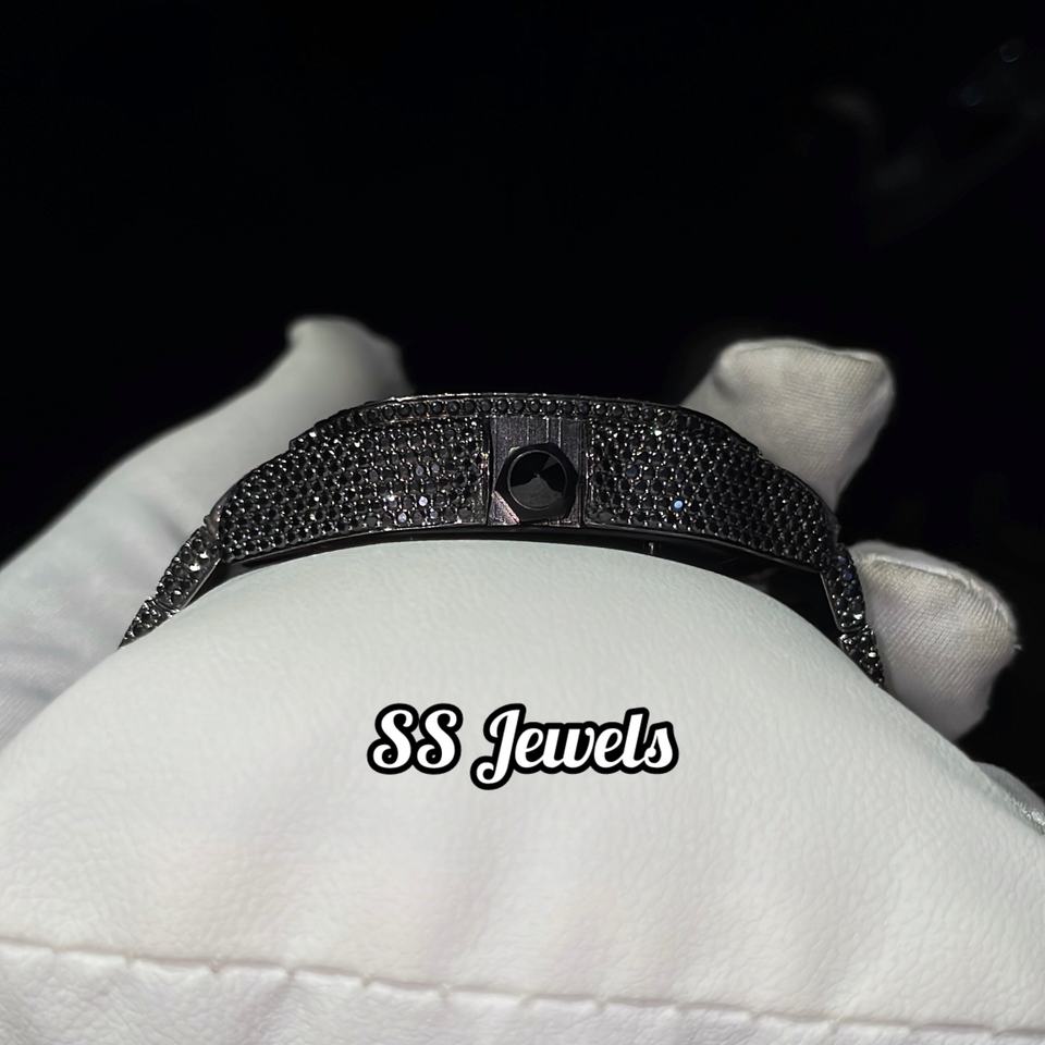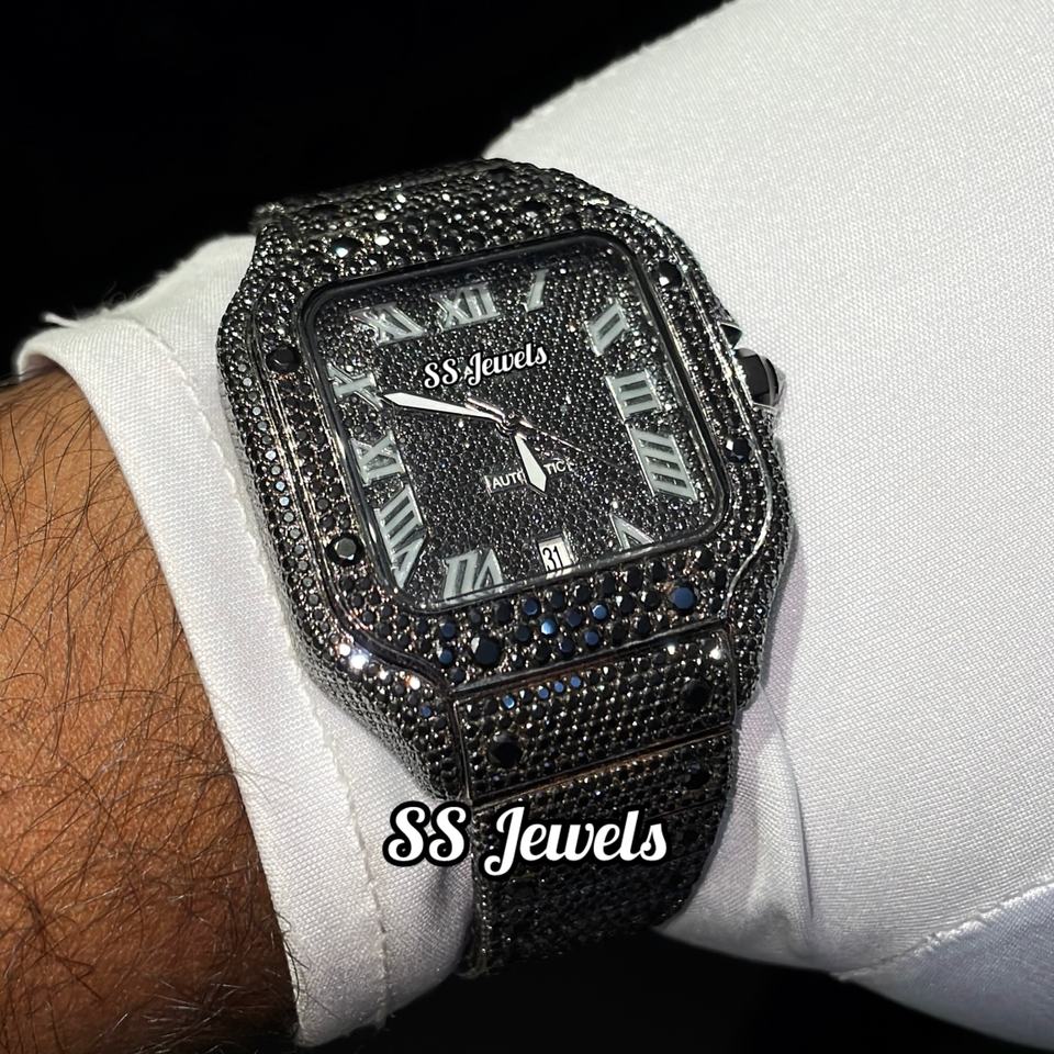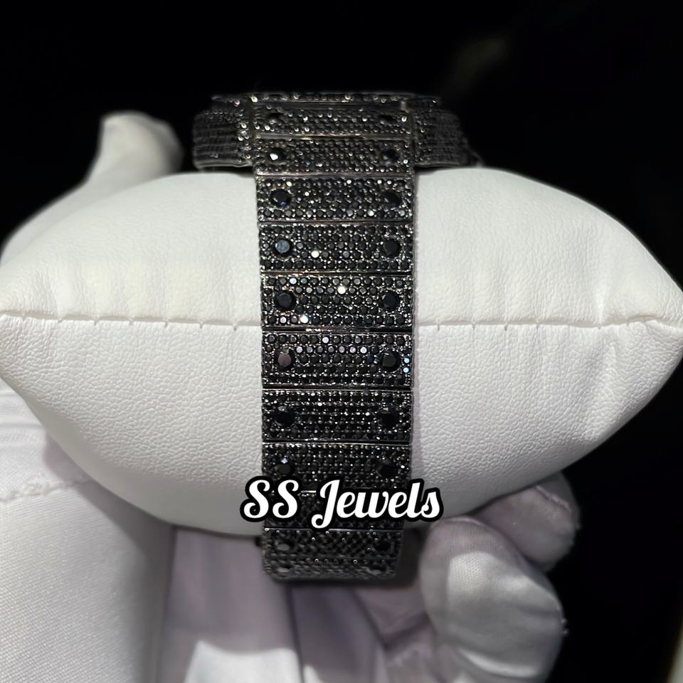 นาฬิกาข้อมือผู้ชายหรูหรา สไตล์ธุรกิจ ระบบออโตเมติก ประดับเพชรโมอิสซาไนต์ หน้าปัดอะนาล็อก ขนาด 41 มม. สายสแตนเลสสีดำ สไตล์โบราณ ฮิปฮอป