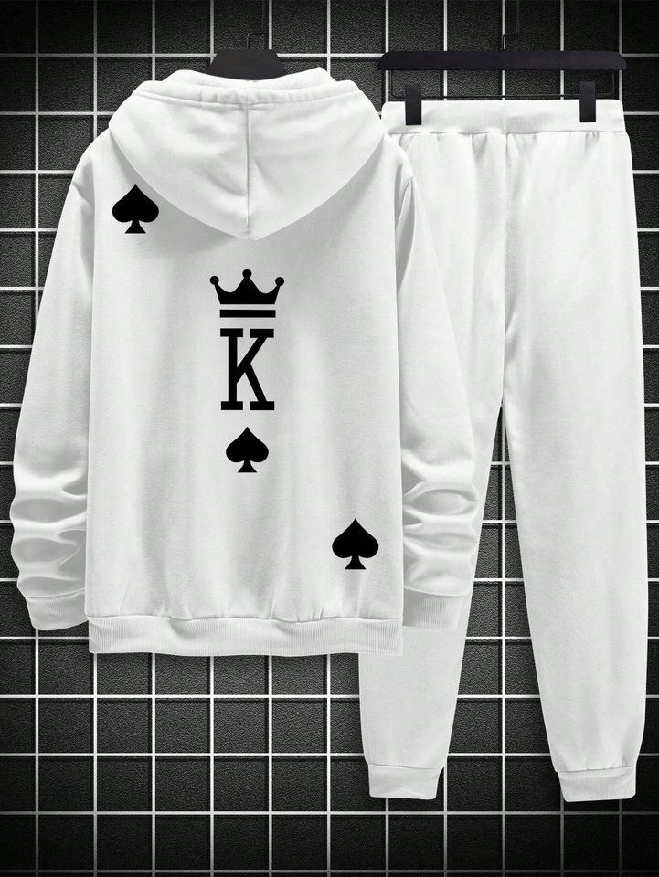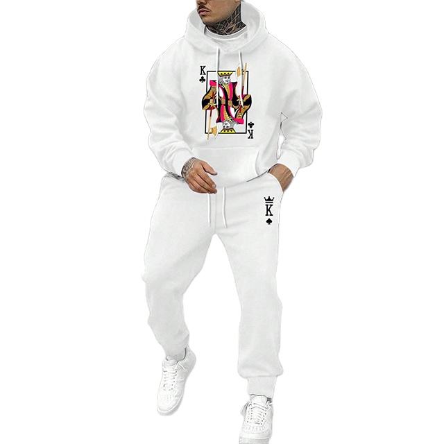ชุดกีฬาลำลองสุดหรูของผู้ชายเสื้อสเวตเชิ้ตและกางเกงผ้าฝ้ายมีฮู้ดสำหรับ100% 2ชิ้นขนาดพิเศษสำหรับฤดูใบไม้ผลิ