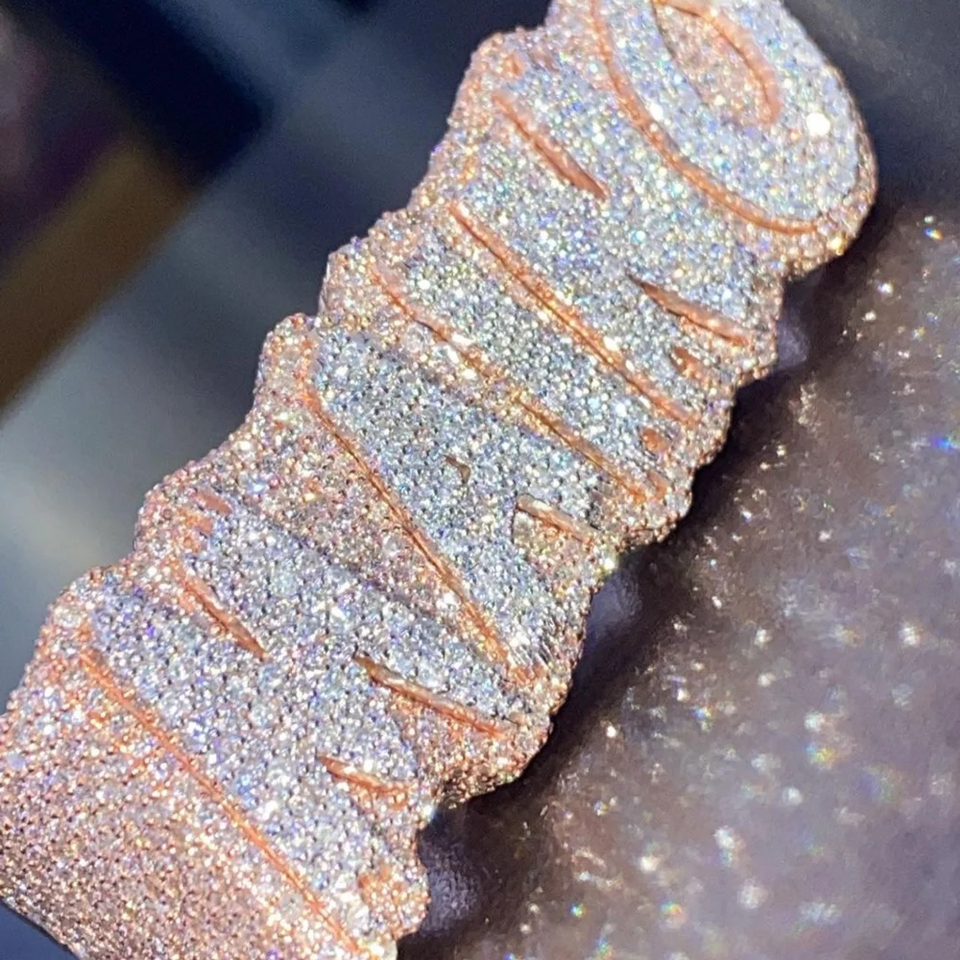 เครื่องประดับเครื่องแต่งกายหรูหราของผู้ชายแหวนฮิปฮอปประดับเพชรแบบเต็มอักษรโค้งมน10K 14K 18K ทองห้องปฏิบัติการปลูกน้ำแข็ง VVS Moissanite