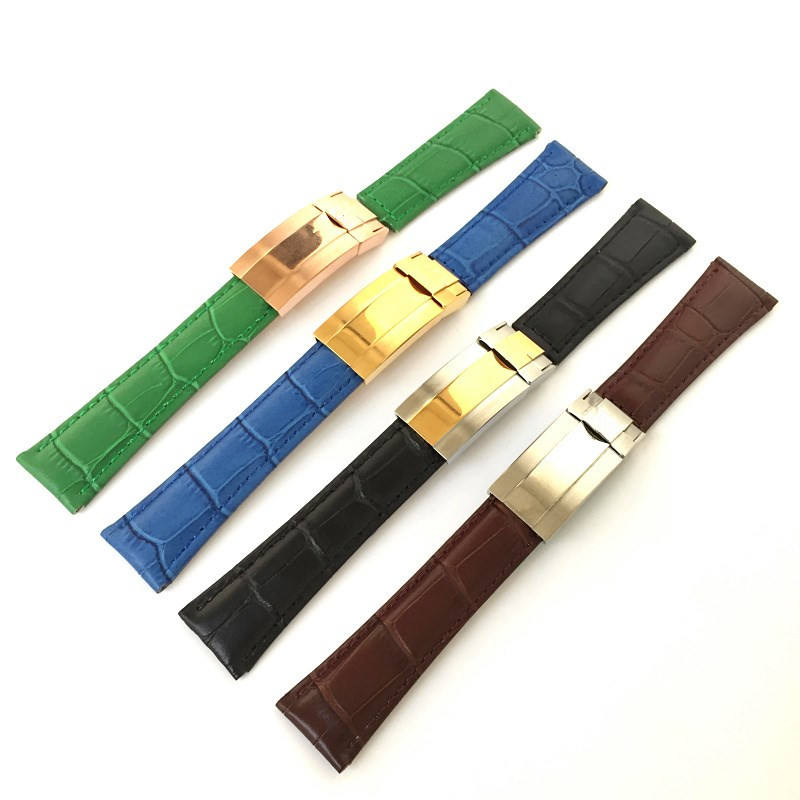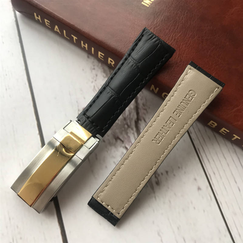 สายนาฬิกาหนังวัวหรูสำหรับผู้ชายสายนาฬิกาปรับได้20มม. พร้อมหัวเข็มขัดโลหะสีทองนิ่มระบายอากาศได้ดีเหมาะสำหรับนาฬิกา