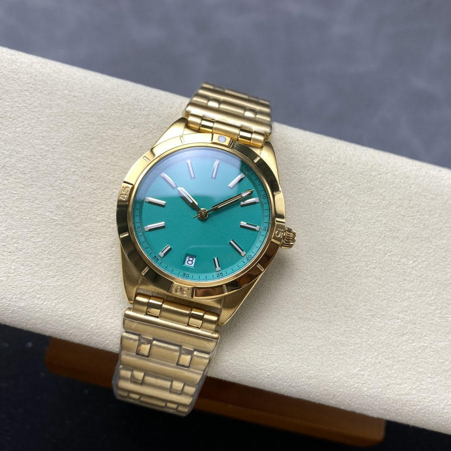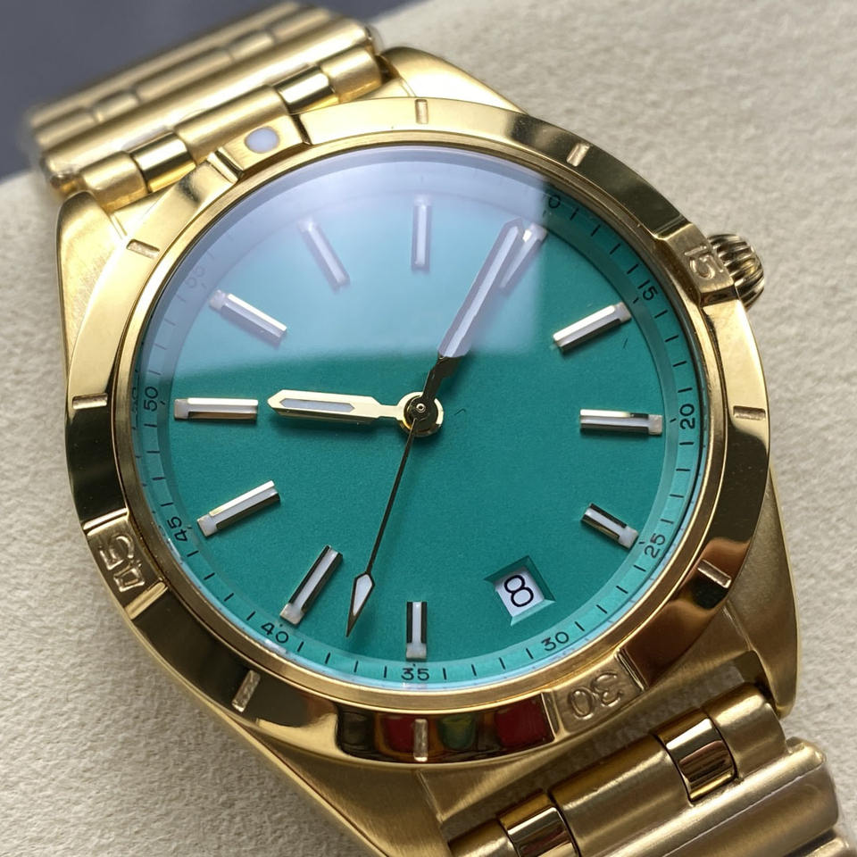 นาฬิกาข้อมือผู้ชายสุดหรู สลักโลโก้ได้ หน้าปัดสีเขียว สายสีทอง กันน้ำ ตัวเรือนสแตนเลส เรืองแสง