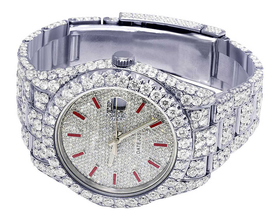 นาฬิกาเพชรหรูหราสำหรับผู้ชายนาฬิกาควอตซ์หน้าปัดกลมนาฬิกาฮิปฮอปสำหรับผู้ชายเครื่องประดับแฟชั่น