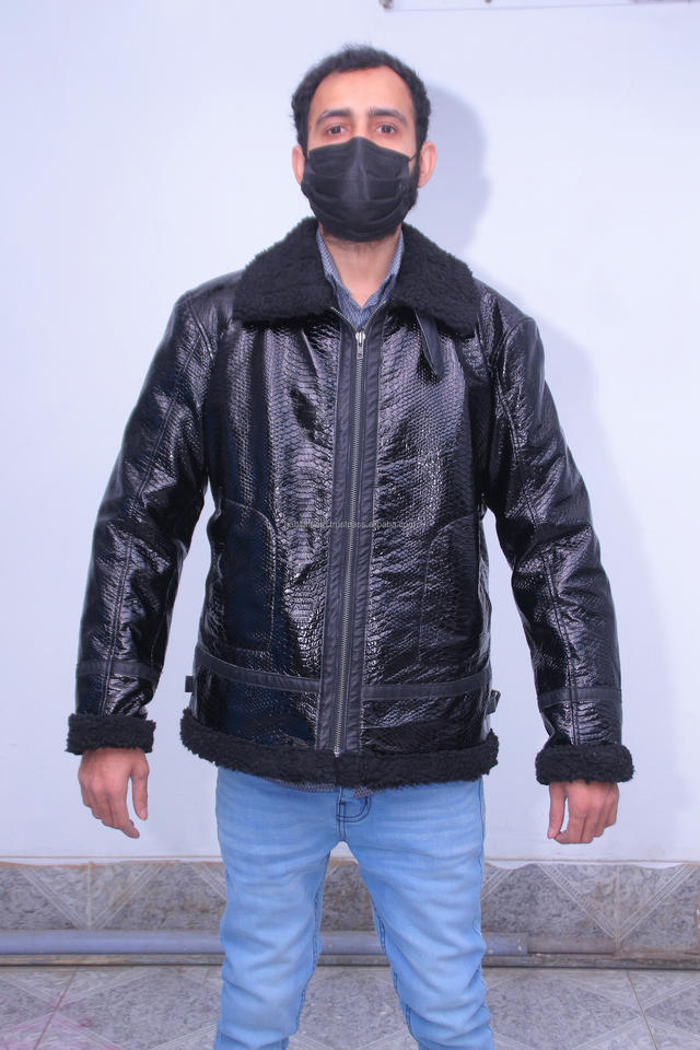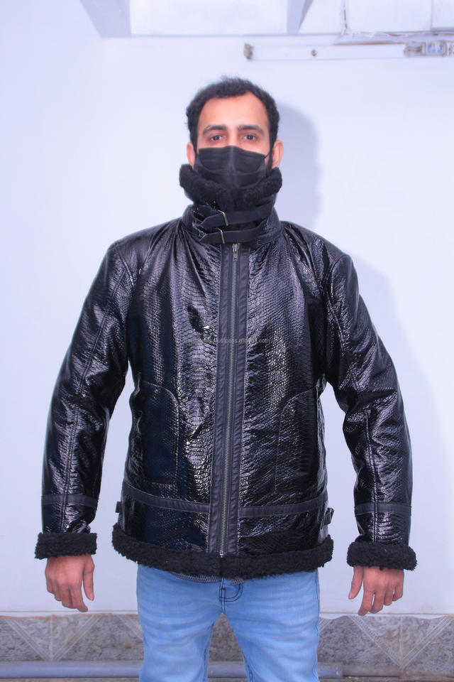 แจ็กเก็ตหนังงูสำหรับผู้ชาย, แจ็คเก็ตหนังพิมพ์ลายงูเหลือมคอตั้งมีซิปปิดสำหรับฤดูหนาวผลิตในปากีสถาน