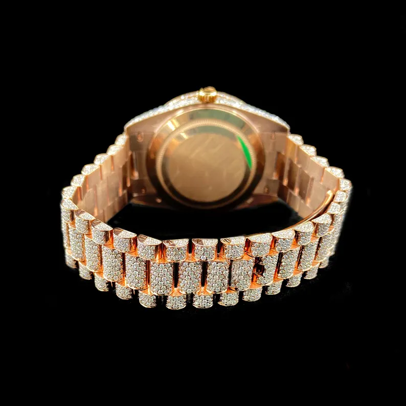 นาฬิกาเพชรโมอิสสีเขียวหรูหราสำหรับผู้ชายตัวเลขโรมันแบบอัตโนมัติ40มม. การเคลื่อนไหวควอตซ์เครื่องประดับน้ำแข็งสไตล์ฮิปฮอป
