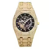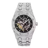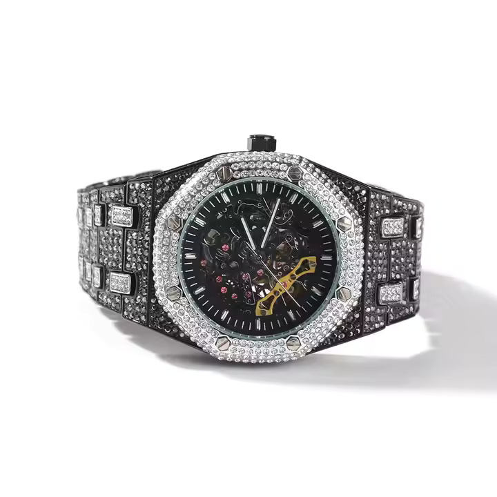 นาฬิกาควอท์ซสไตล์ฮิปฮอปสุดหรูสำหรับผู้ชายนาฬิกาอะนาล็อกสายสแตนเลส5มม. เพชรเพชรเพชรเพชรเพชรเพชรเพชรเพชรน้ำแข็ง