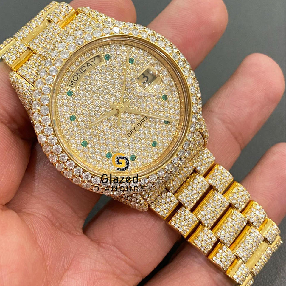 นาฬิกาเพชรโมอิสสุดหรูสำหรับผู้ชายใสตัดได้อย่างยอดเยี่ยมประดับเพชรสไตล์ฮิปฮอปหน้าปัดอะนาล็อกควอตซ์สแตนเลสสตีล