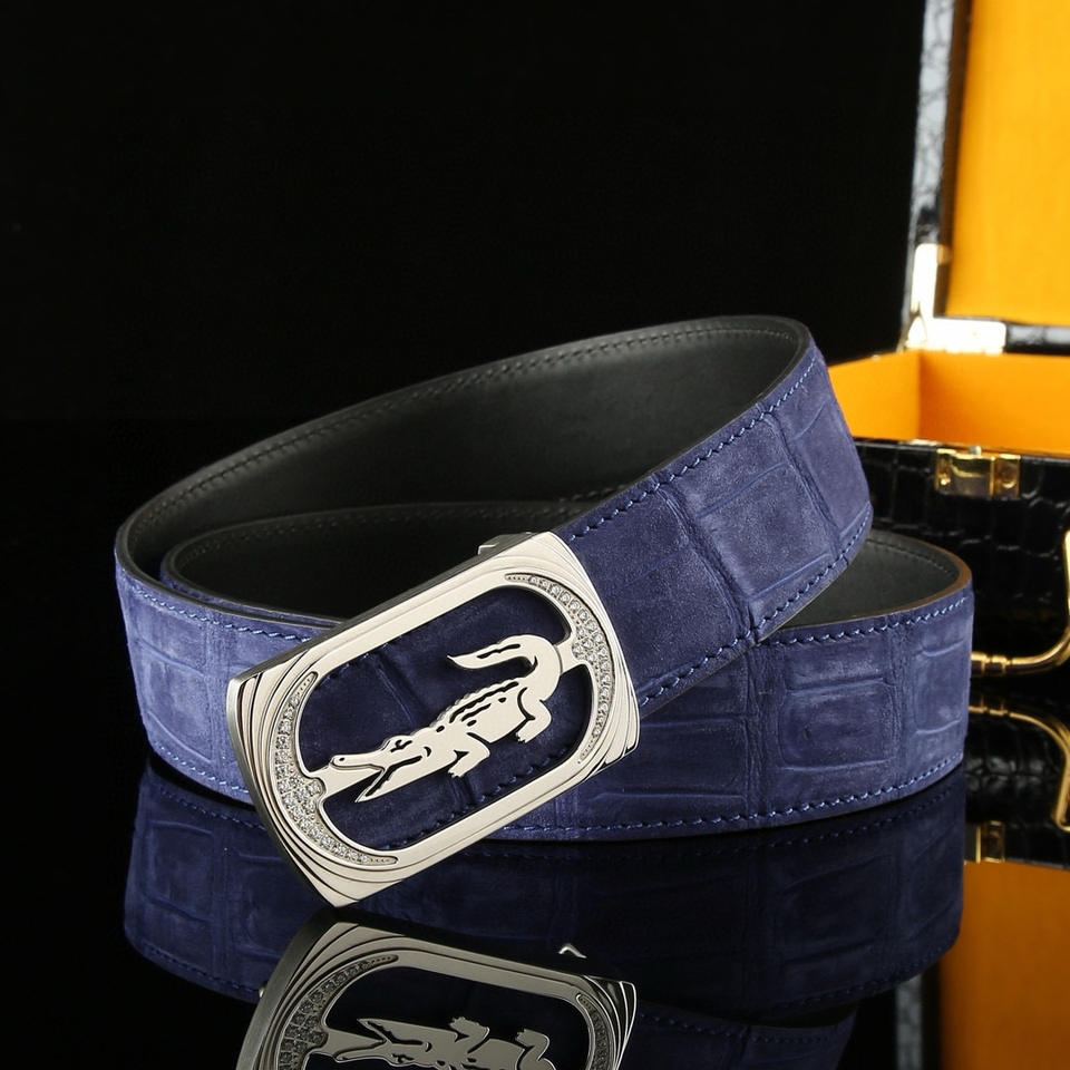 Nilo หรูหราเข็มขัดหนังจระเข้พ่นทรายพร้อมตะขอ3.8กว้างหัวเข็มขัดเหล็กอัตโนมัติ