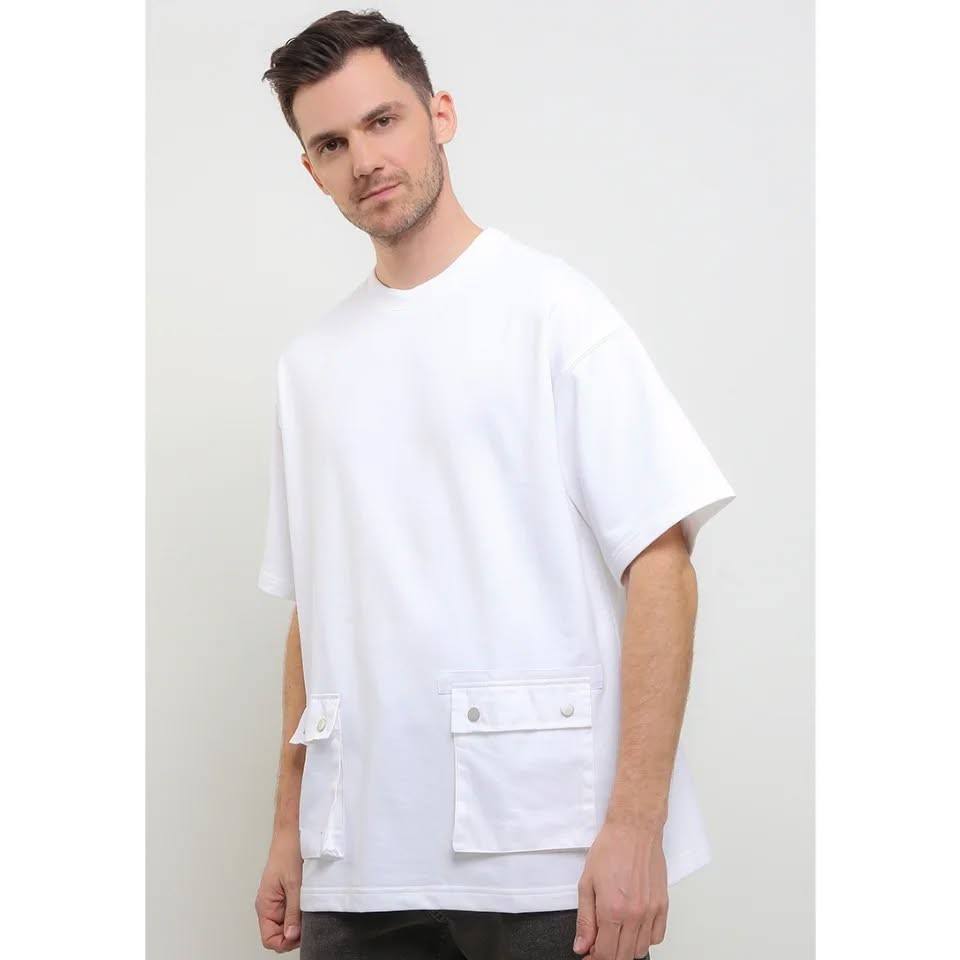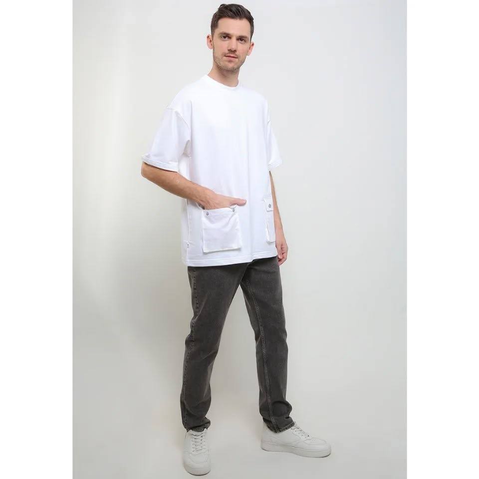 เสื้อยืดคอกลมสำหรับผู้ชาย, ผ้าฝ้าย100% โอเวอร์ไซส์หรูหราสำหรับสวมใส่ทุกวันมีกระเป๋าสองใบด้านหน้า