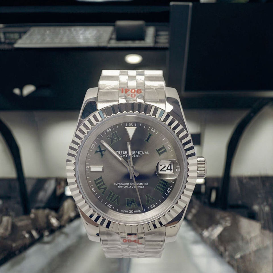 นาฬิกาข้อมือผู้ชายสุดหรู ดีไซน์หน้าปัดโรมันสีเขียว รูปทรงหัวไชเท้า ฟังก์ชั่นหลากหลาย ตัวเรือนสแตนเลส กันน้ำ ขนาด 40 มม. พร้อมปฏิทิน รุ่นใหม่