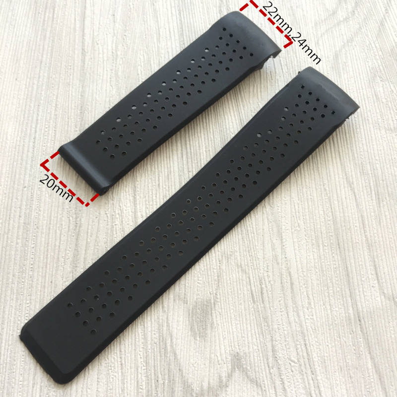 สายนาฬิกาข้อมือยางสุดหรูสำหรับผู้ชาย รุ่น Super Carrera ปรับได้ ระบายอากาศได้ดี นุ่ม กันน้ำ พร้อมตัวล็อคแบบ Deployant และหัวเข็มขัดสแตนเลส