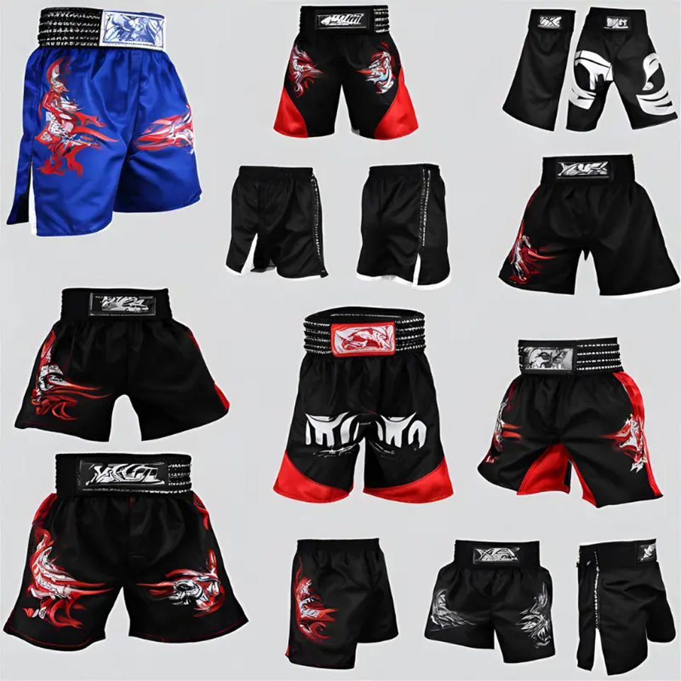 กางเกงขาสั้น MMA สำหรับผู้ชายกางเกงมวยไทยขาสั้นสำหรับผู้ใหญ่ชุดฝึกกีฬาเข้ายิม