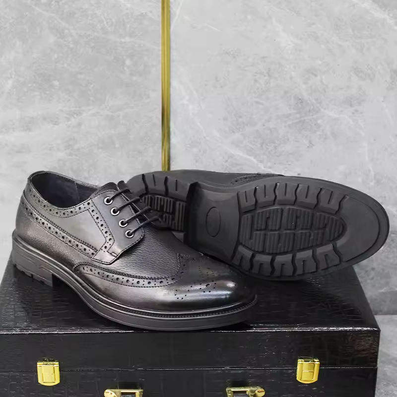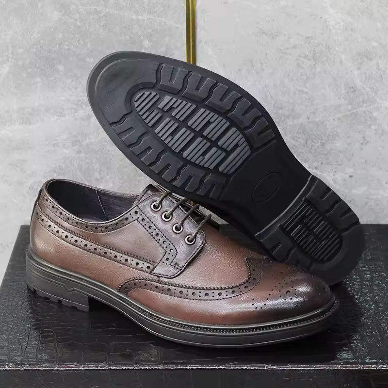 รองเท้าหนังสีมะฮอกกานีแบบผูกเชือกสำหรับผู้ชาย - กันน้ำ ระบายอากาศได้ดี และเย็บอย่างประณีต - สไตล์วินเทจสำหรับธุรกิจ