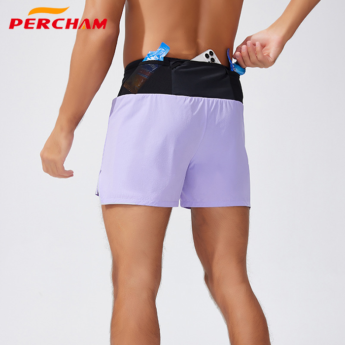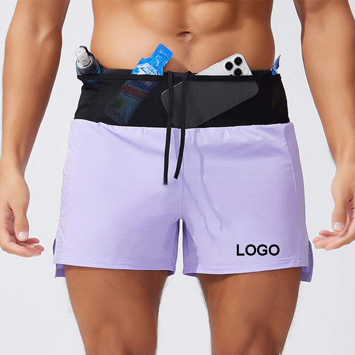 กางเกงขาสั้นออกกำลังกายกีฬาวิ่งมาราธอนของผู้ชายแห้งเร็วพร้อมกระเป๋าตาข่าย