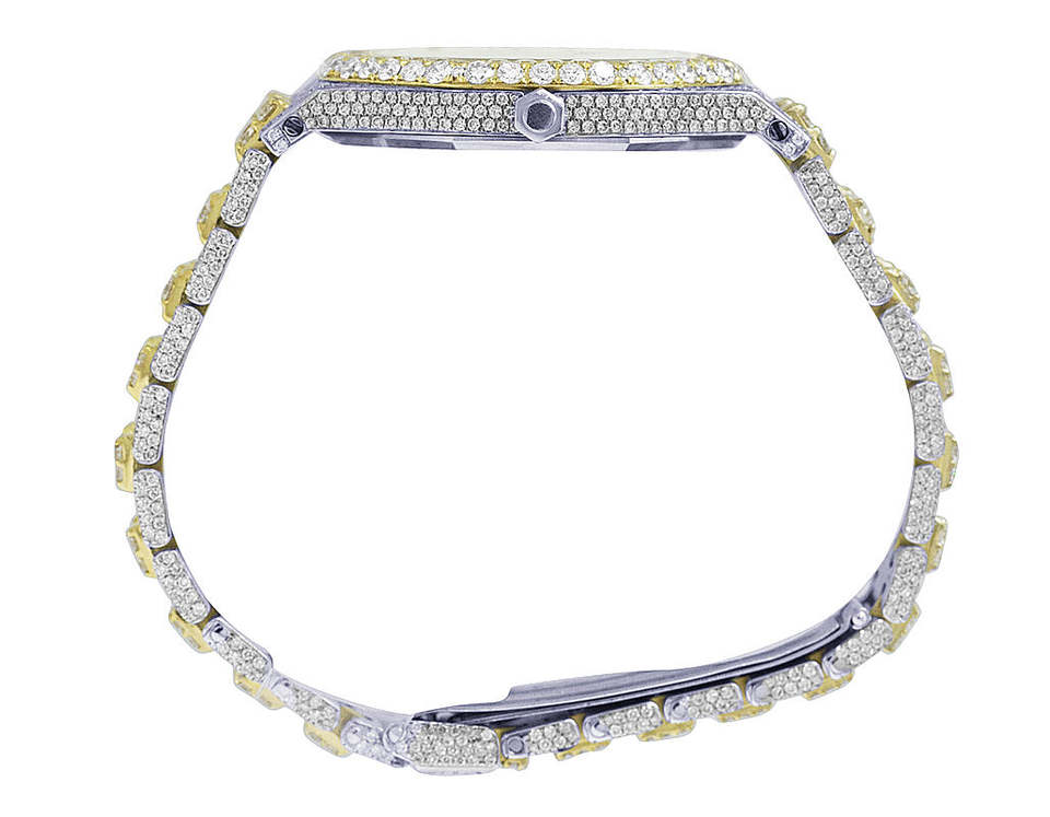 นาฬิกาข้อมือผู้ชายทรงเหลี่ยม ระบบจักรกล ประดับเพชรโมอิสซาไนต์ สายแบบเต็มประดับเพชร สไตล์วินเทจ แฟชั่นฮิปฮอป สายสแตนเลส